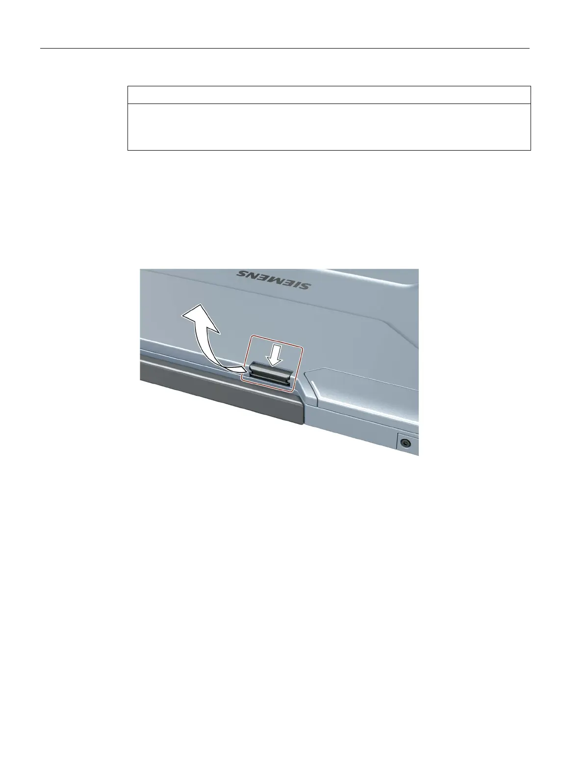 • Open the display by pressing the display latch, see marking: