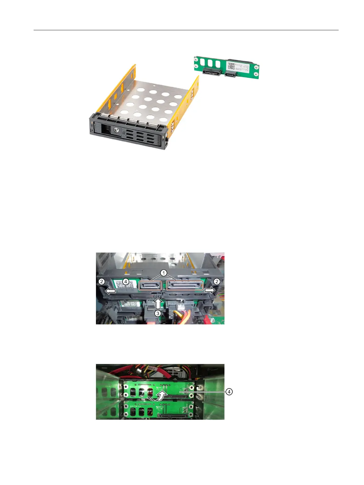 4. Remove the unlatched backplane board ④ by turning it upwards from the brackets and