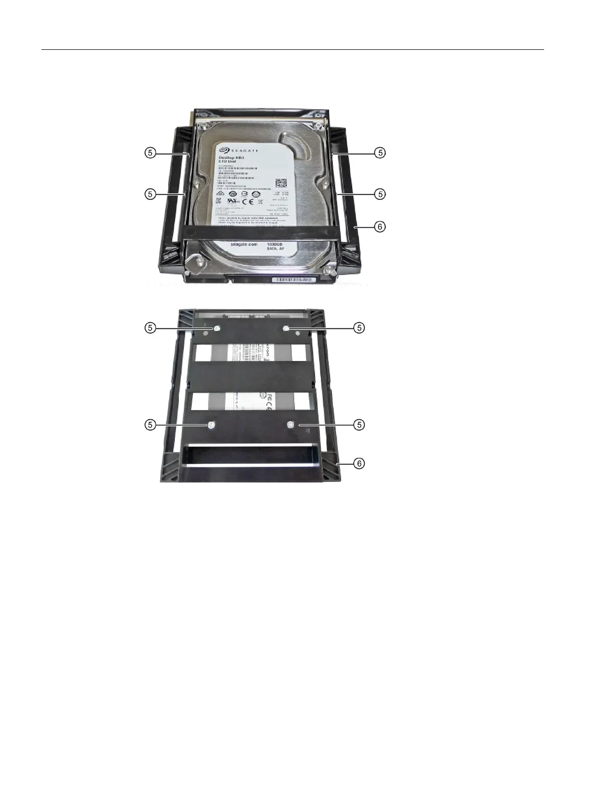 8. Install the new drive in the drive bay ⑥. Ensure that the new drive faces upwards.