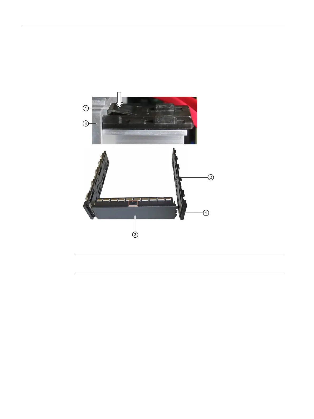 – Press on the surfaces ① on the two side mounting bars ② of the 5.25" component.