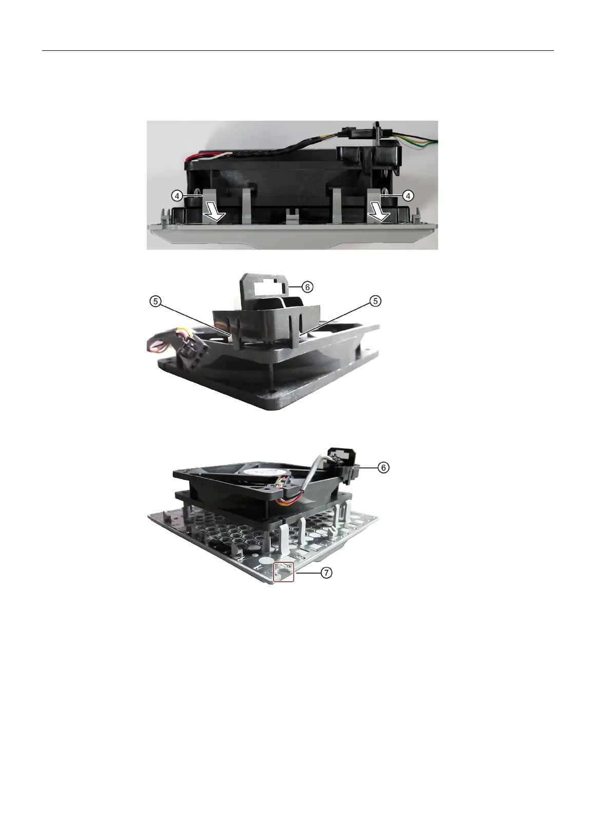 12.Snap the fan into place at the locking latches of the fan support ④.