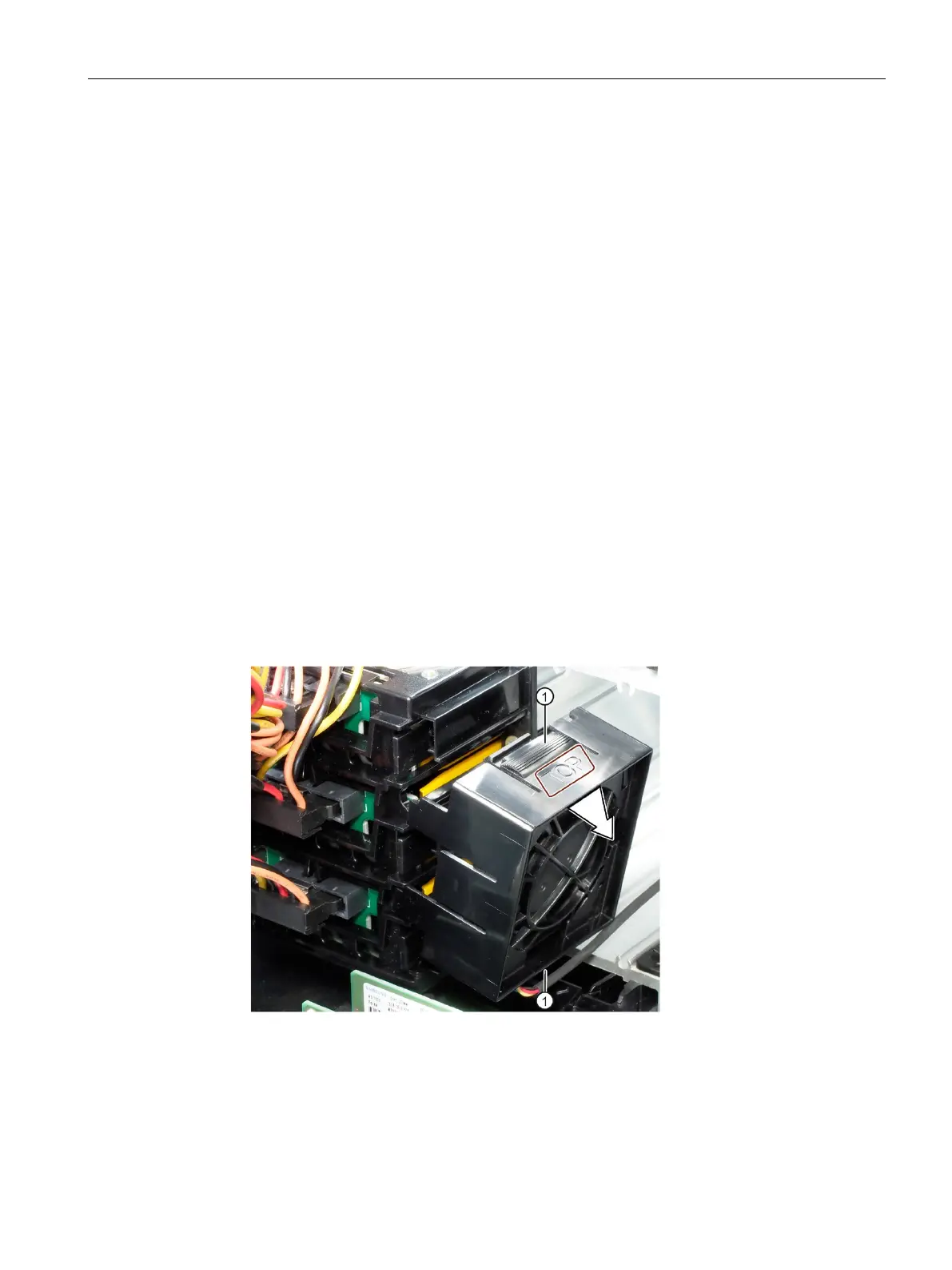 4. Press the upper and lower lock ① on the fan support and remove the fan support from the