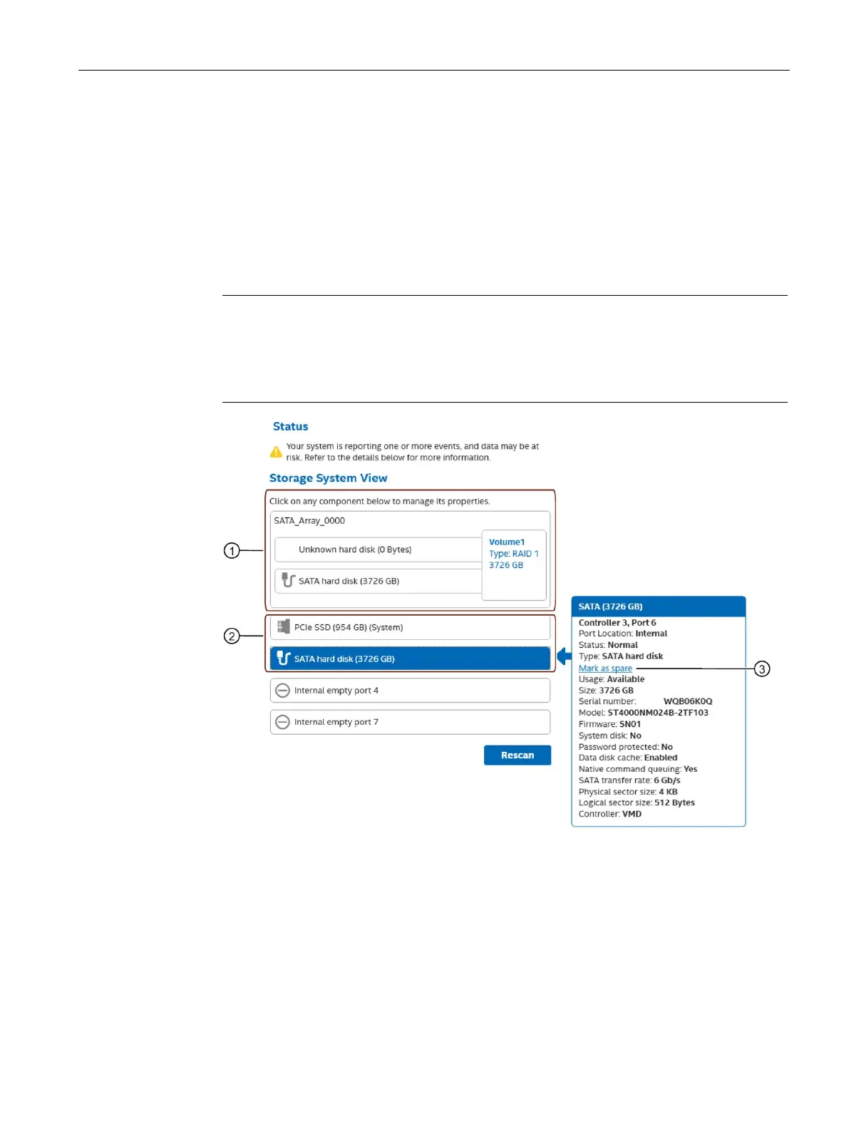 ① The drives mounted in the onboard RAID system with the information that a drive is not