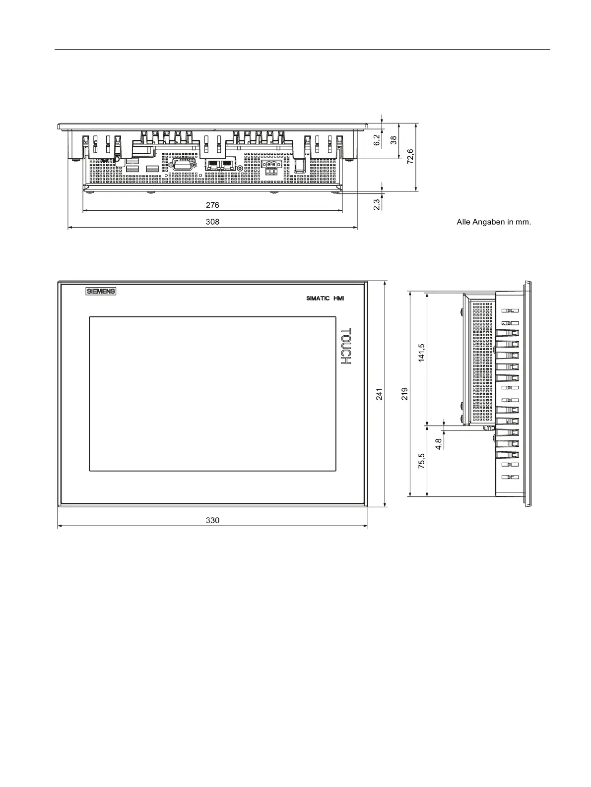 Dimensional drawing IPC277D, 12" display