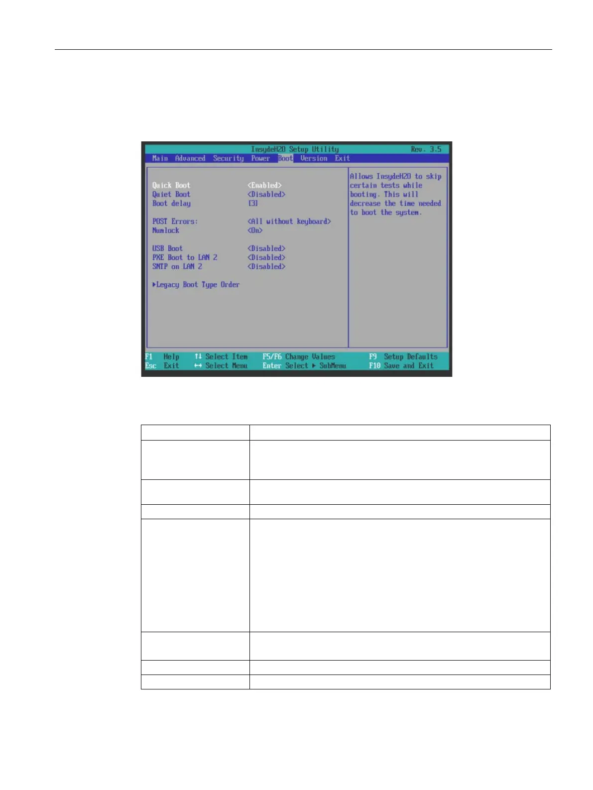 Quick Boot Enable or disable