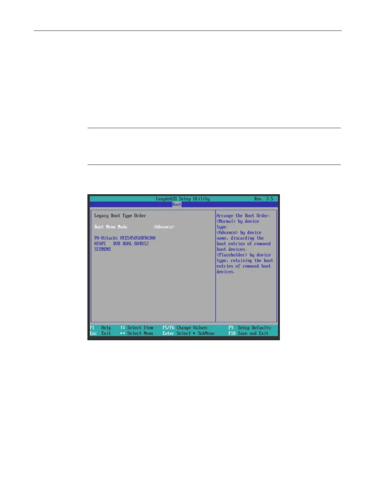 "Legacy Boot Type Order (Advance)" submenu