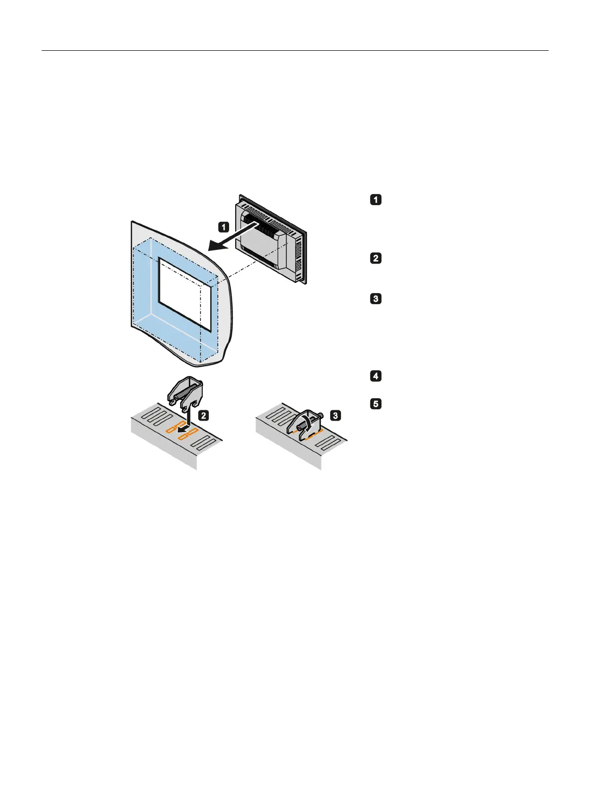 ● To install the HMI device, you need the mounting clamps from the accessory kit.