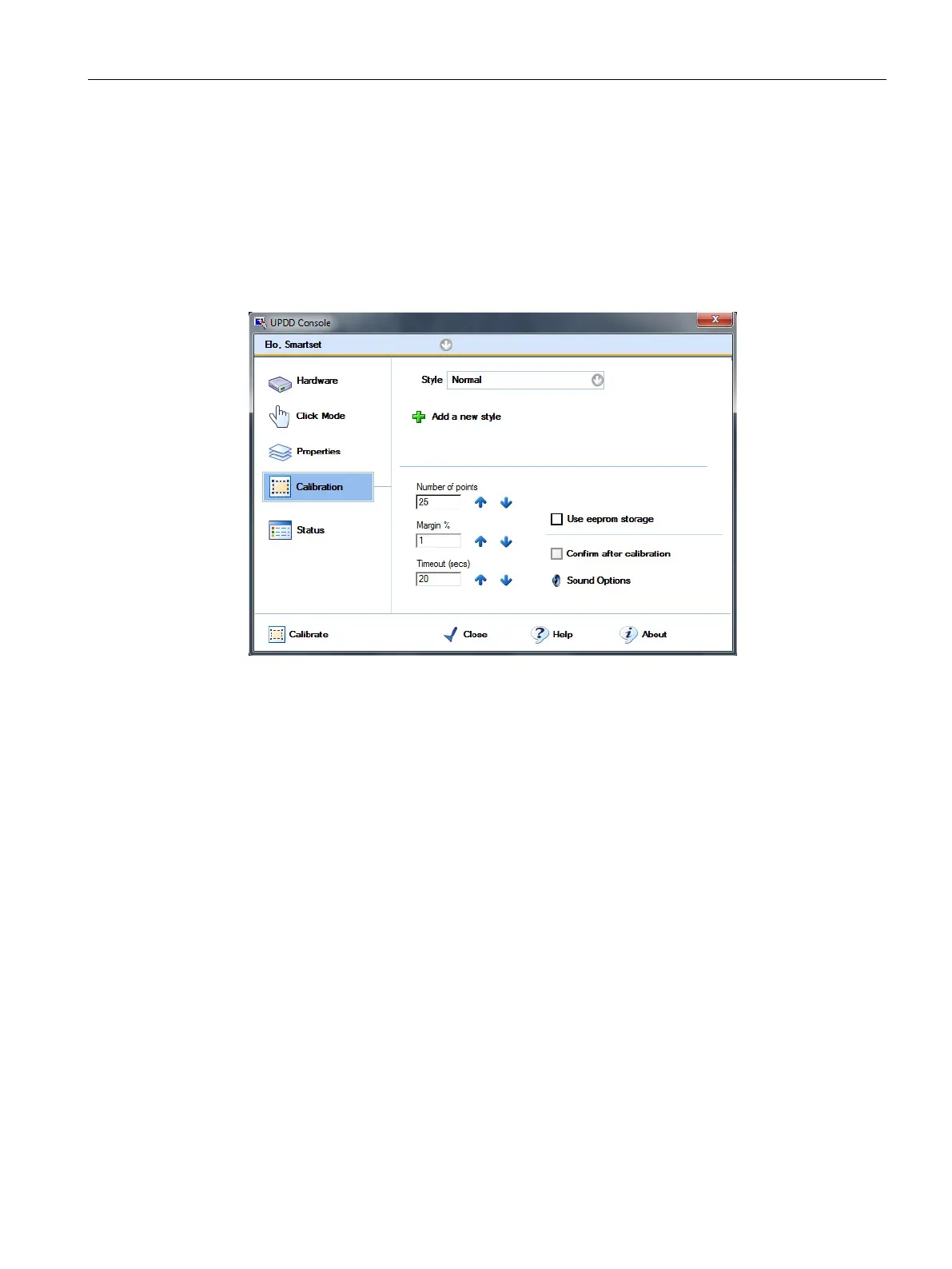 Select the touch controller of the device you want to calibrate in the header of the dialog.