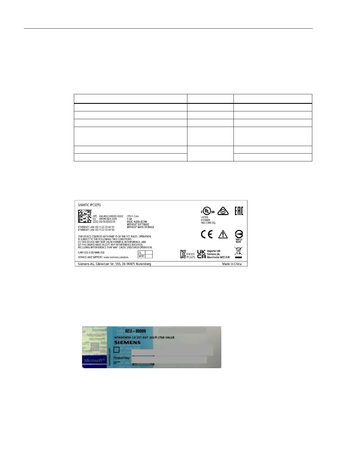 The following image shows the product label on the SIMATIC IPC327G as an example.