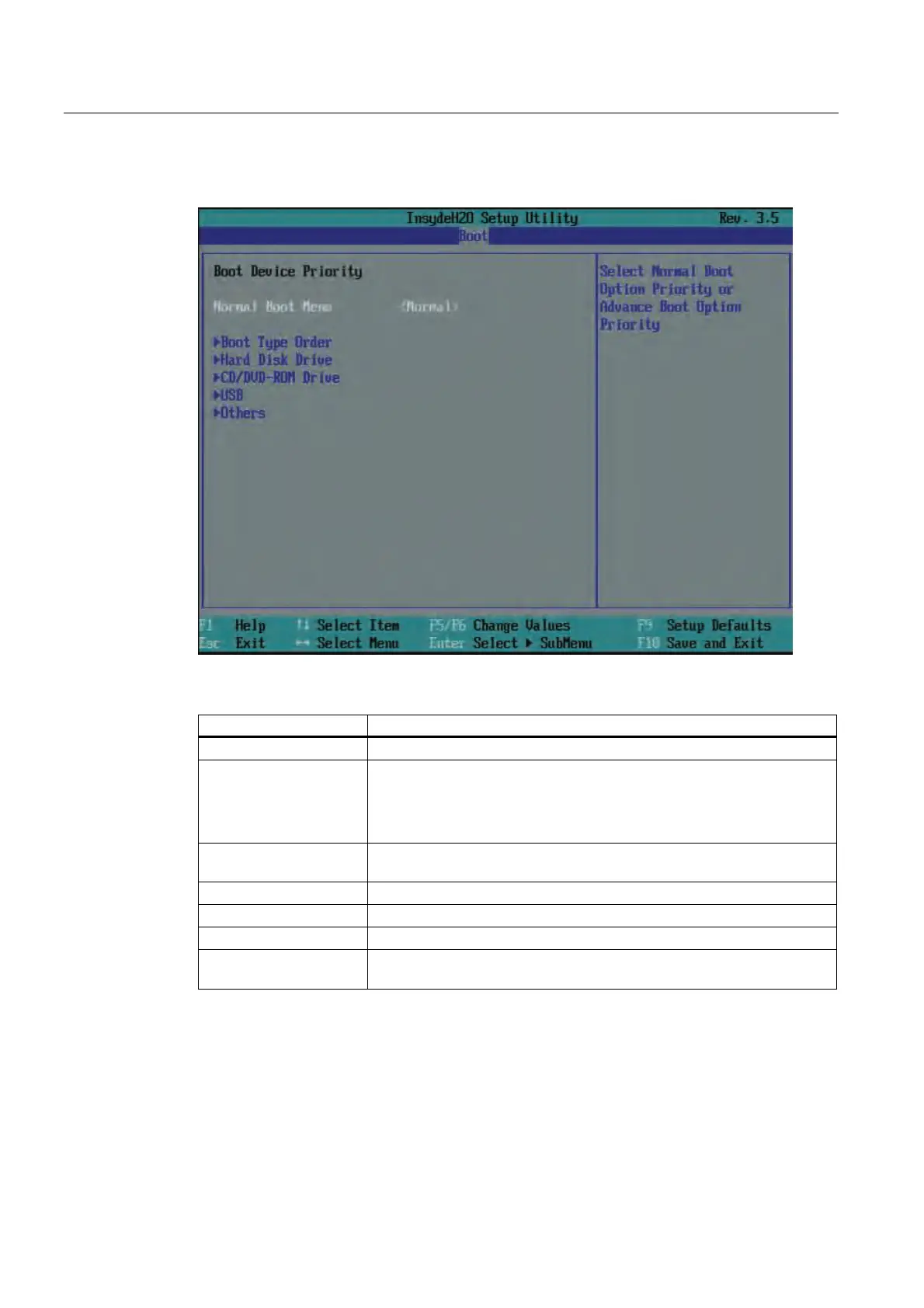 Others Submenu for setting the boot order within the group of Others (for