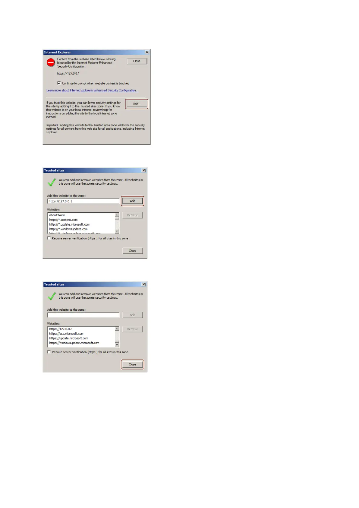 5. The website "https://127.0.0.1" has been added to the "Websites" list.