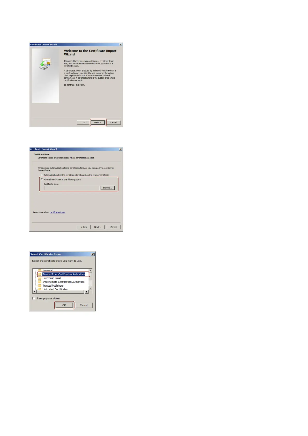 6. The dialog for selection of the storage location for the certificate store is displayed.