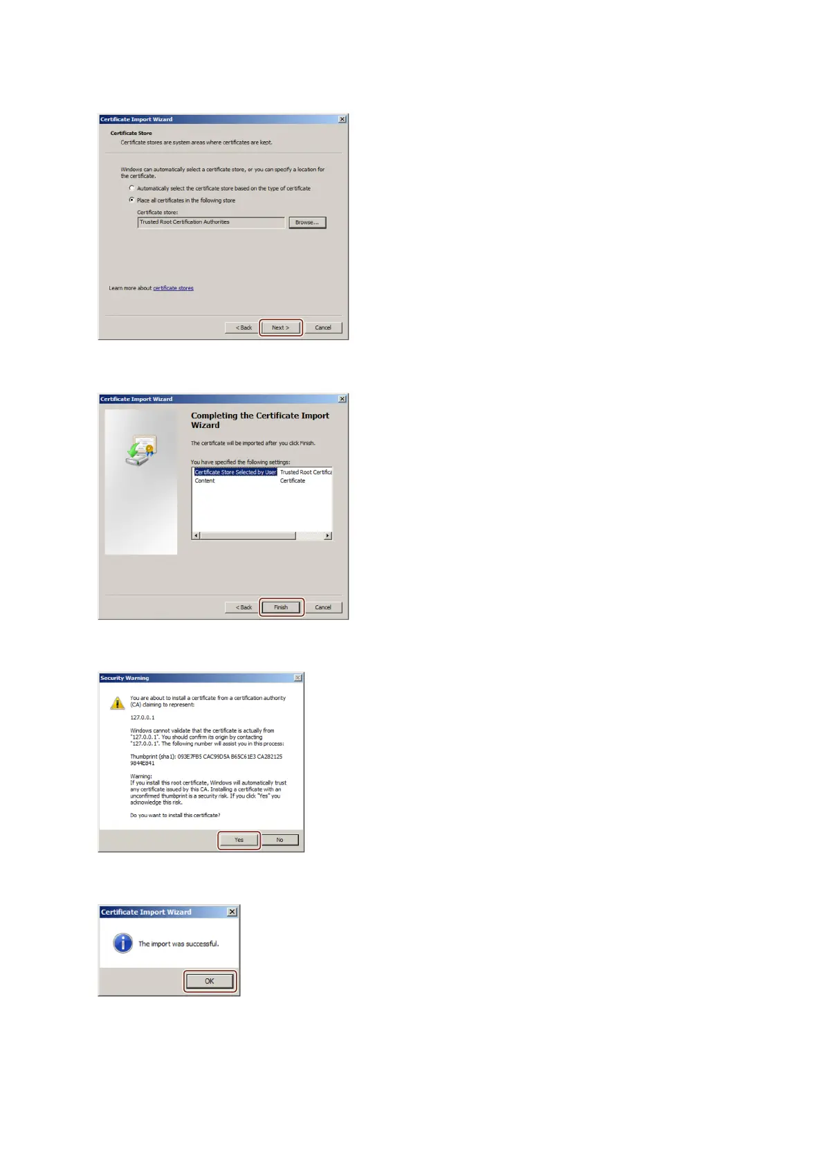 9. The "Completing the Certificate Import Wizard" dialog is displayed.
