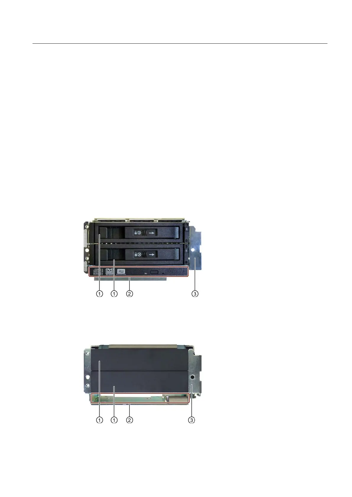 HDDs and SSDs. A Slimline DVD drive can be mounted in the lower drive bay.