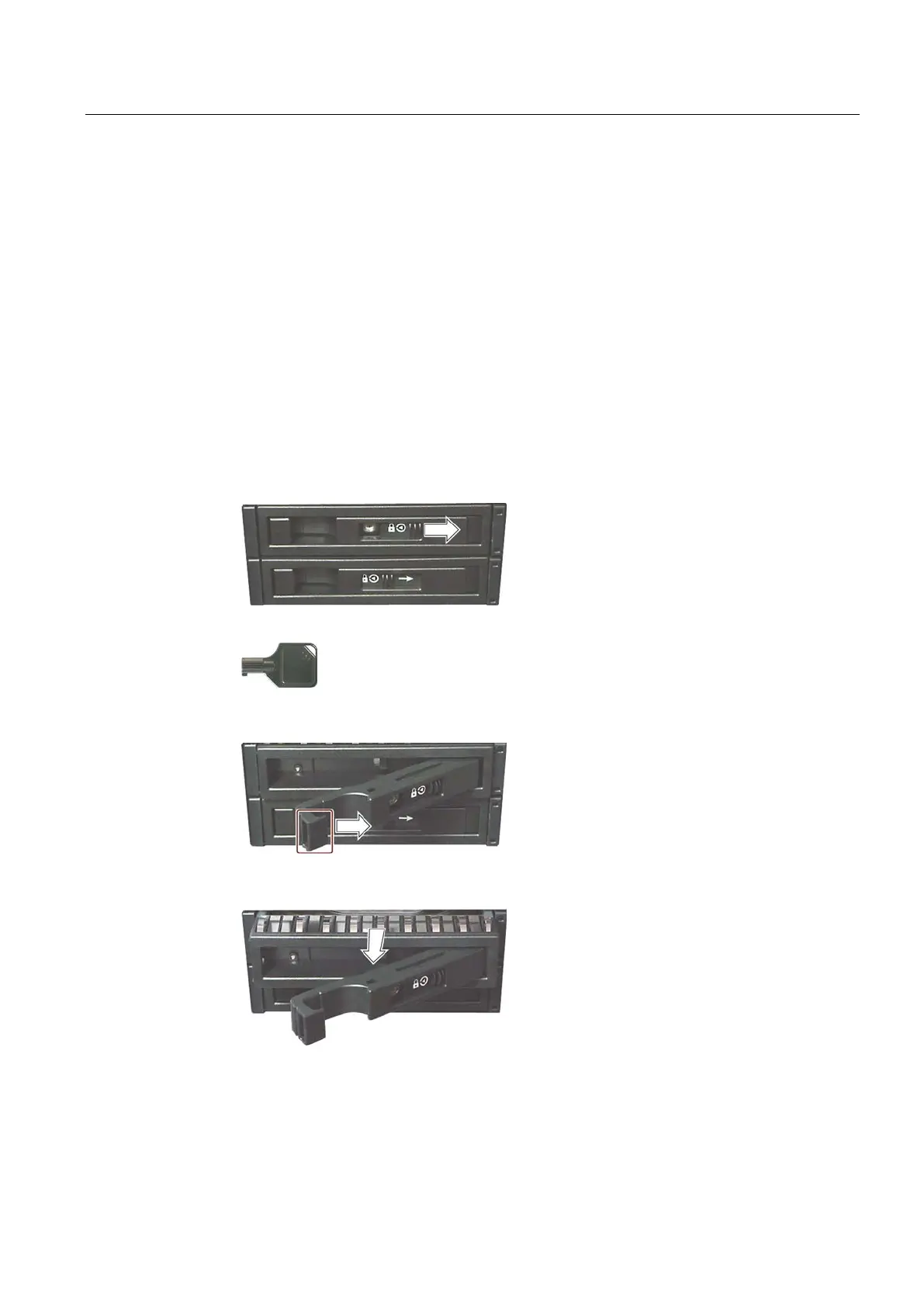 1. Slide the cover of the locking mechanism of the removable drive bay in the direction of