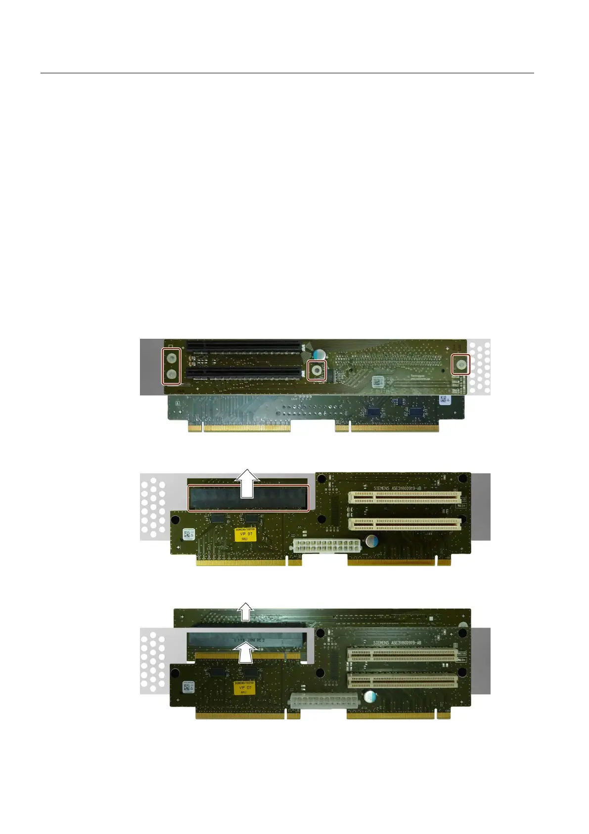 1. Remove the marked screws with which the piggyback is fastened to the middle rail of the