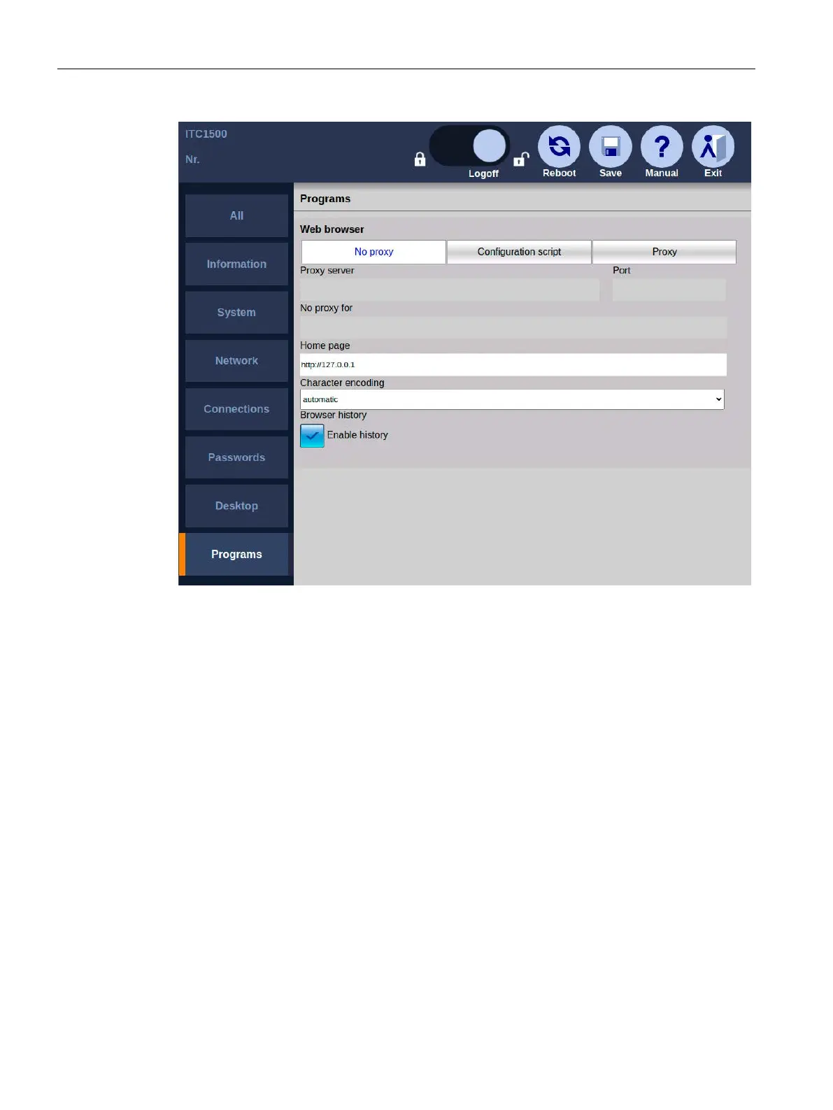 • If "No proxy" is selected, there is no proxy server request, and a direct connection to the
