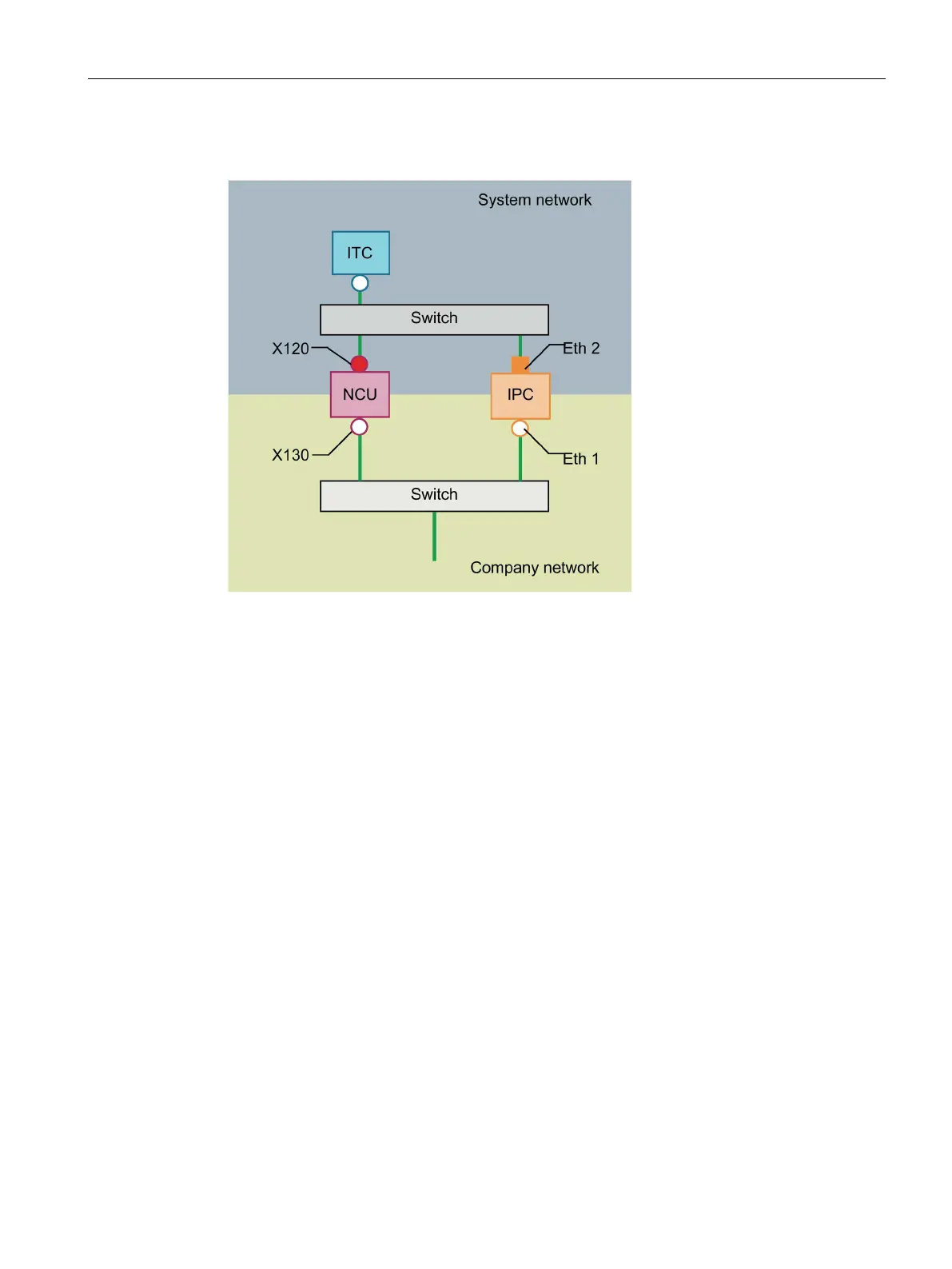 In this configuration, a switch is also required for the system network. All components are