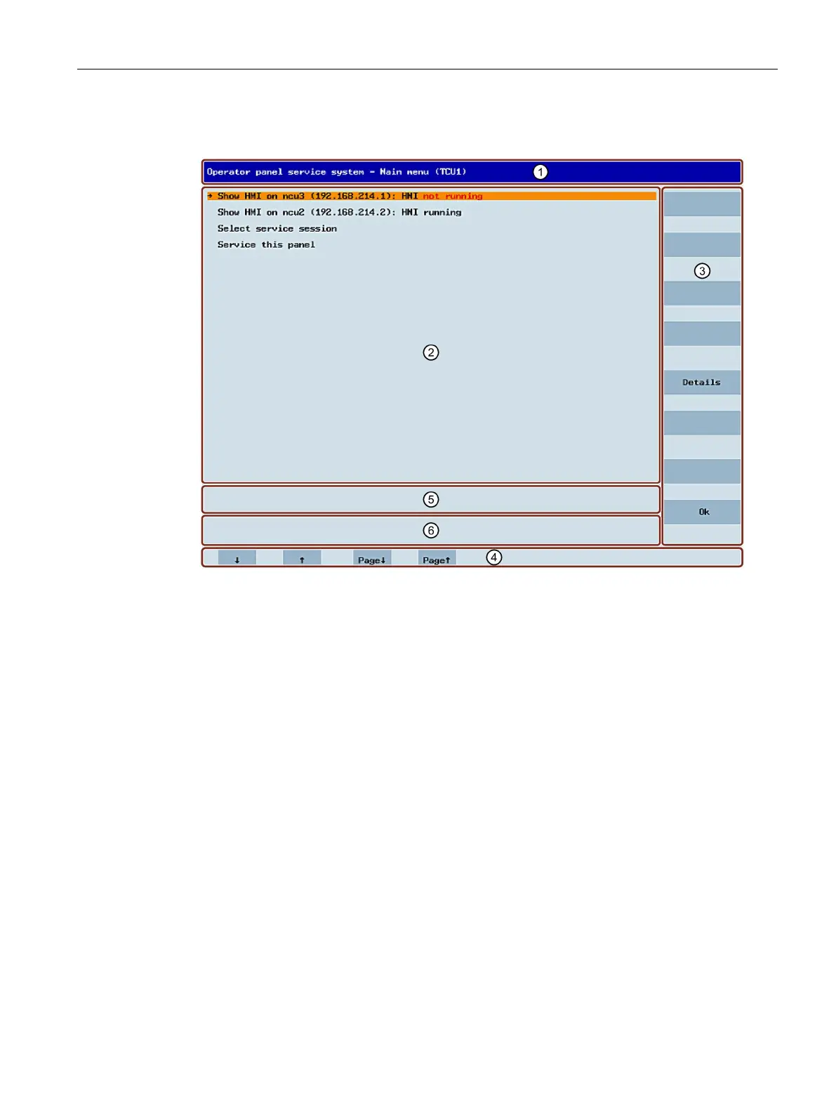 • "Service this panel" opens the "Service menu for operator panel" submenu.