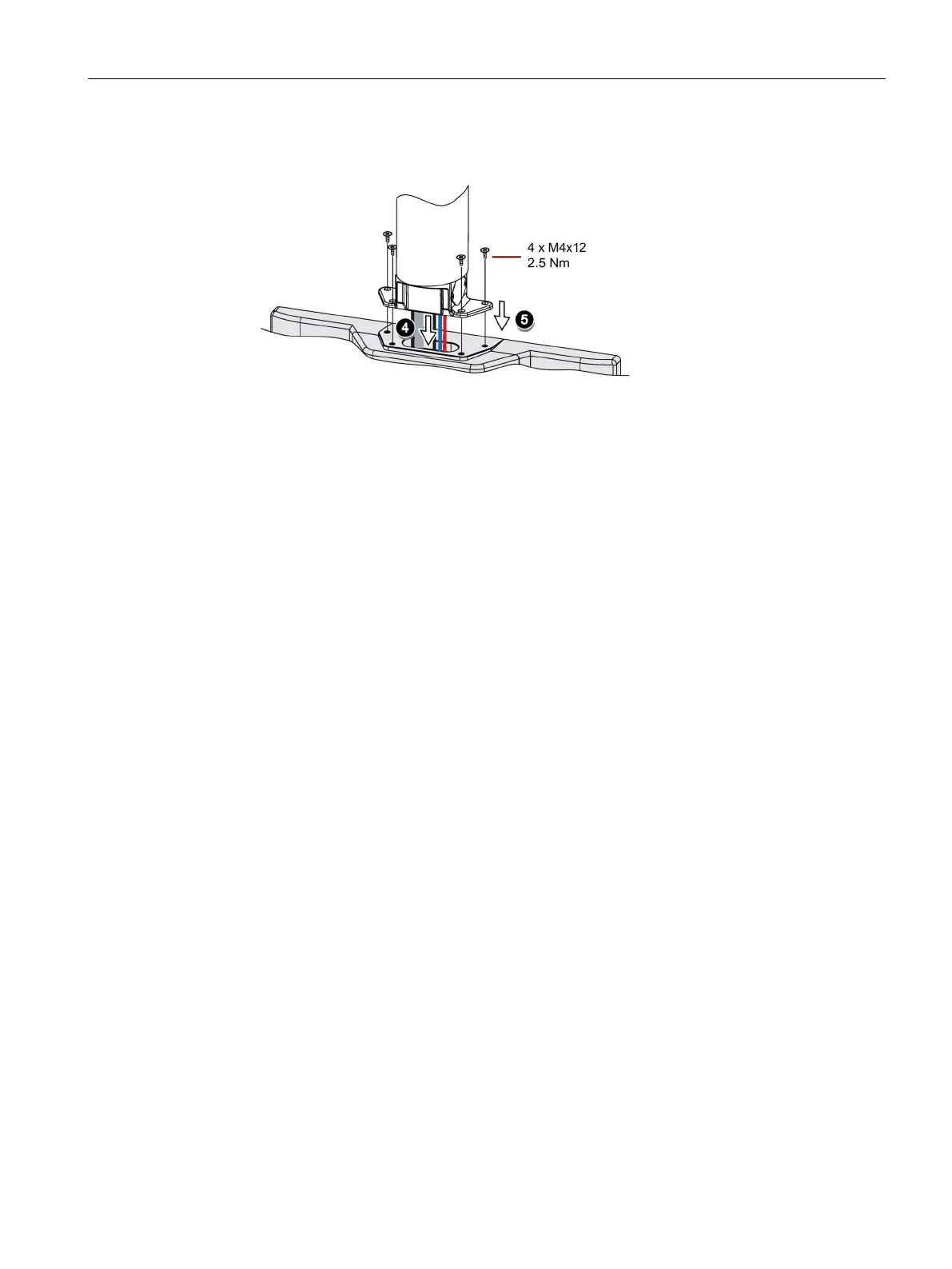 5. Attach the device with 4 M4x12 screws to the base adapter from the top, torque 2.5 Nm.