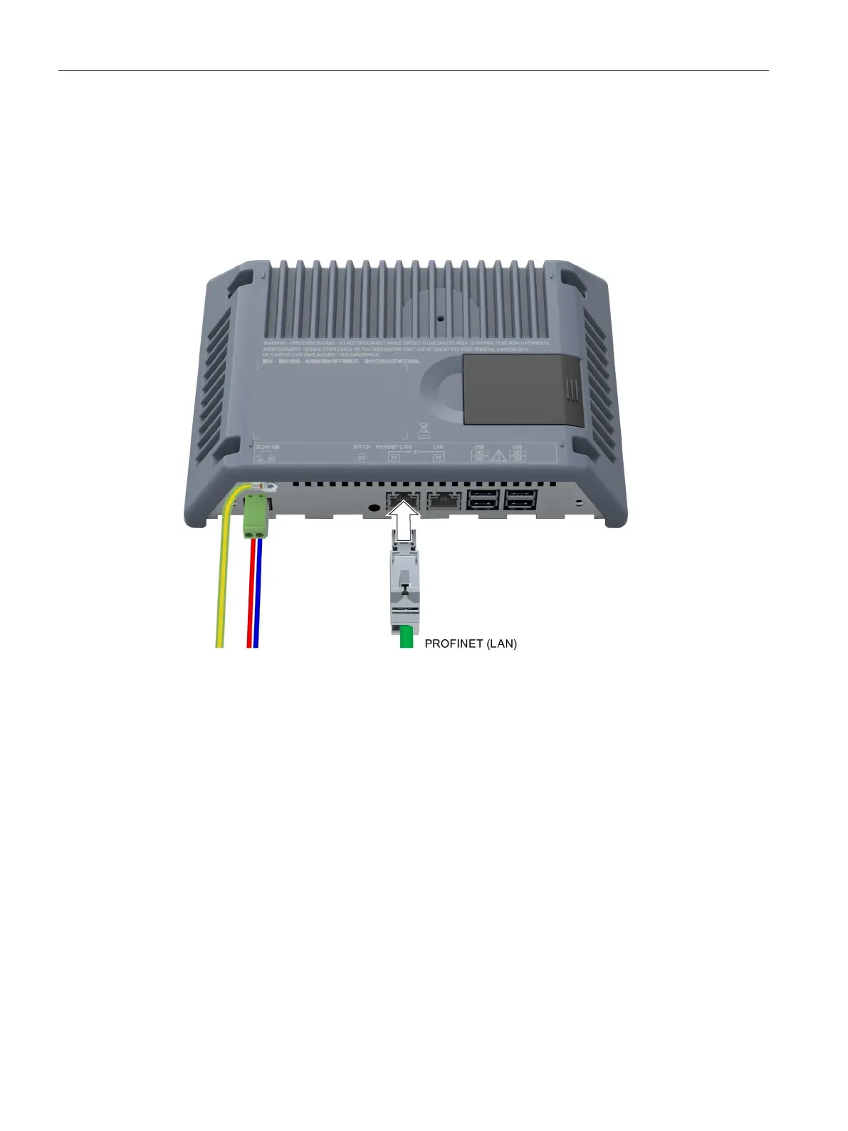 1. Connect the PROFINET/Ethernet cable to the PROFINET (LAN) interface on the device.