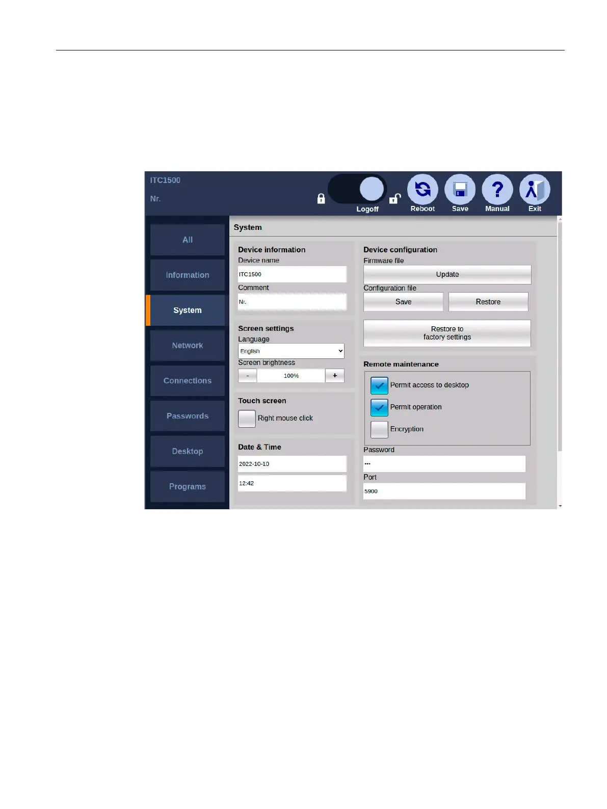 The following figure shows the system settings in the Start menu "Configuration > System".
