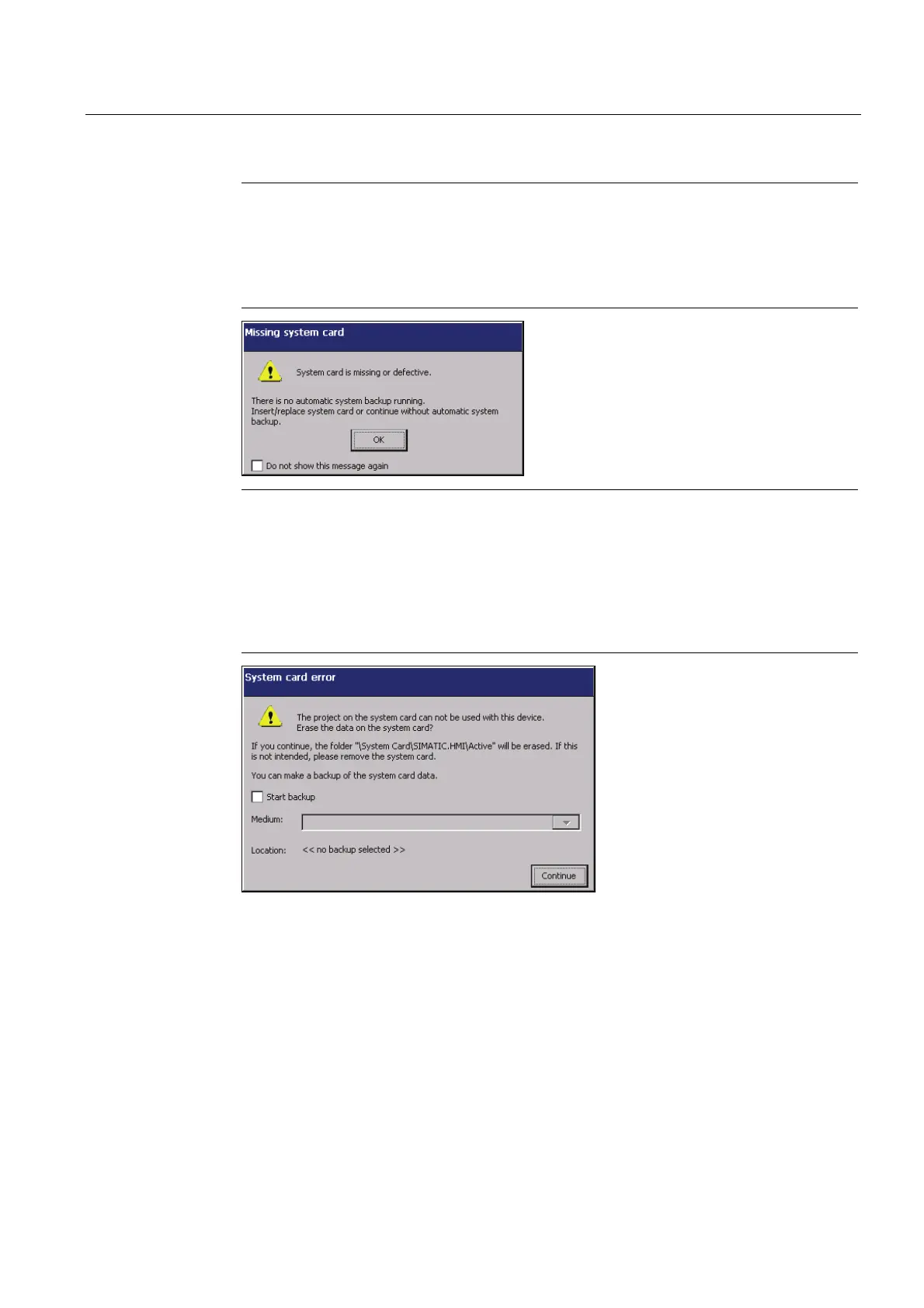 If you insert a system memory card from a non-identical HMI device, the message "Use