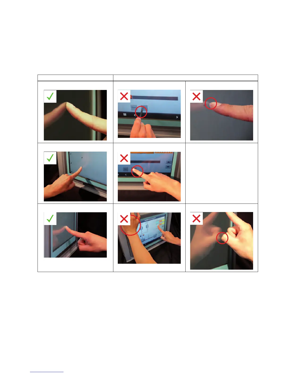 Die folgende Tabelle enthält eine Zusammenfassung der richtigen und falschen Bedienung des kapazitiven Touch-Screen.