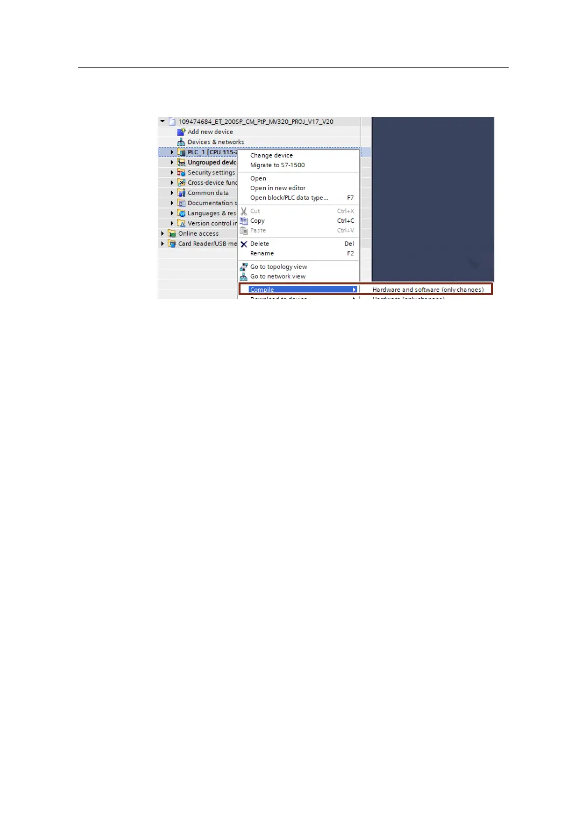 13. Compile the hardware and software of the S7 station. To do this, right-click the