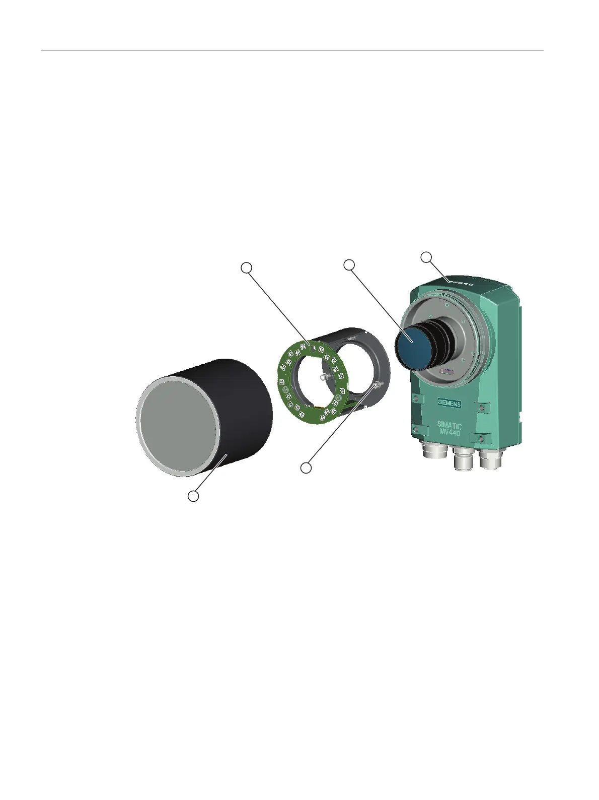 Figure 6-1 Installation of the SIMATIC MV440 reader with protective lens cover and built-in ring light