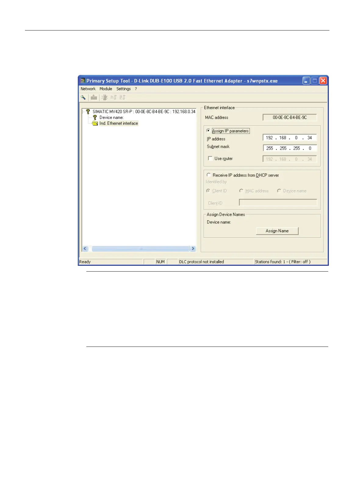 5. Select "Assign IP parameters" and enter the values for the IP address and subnet mask