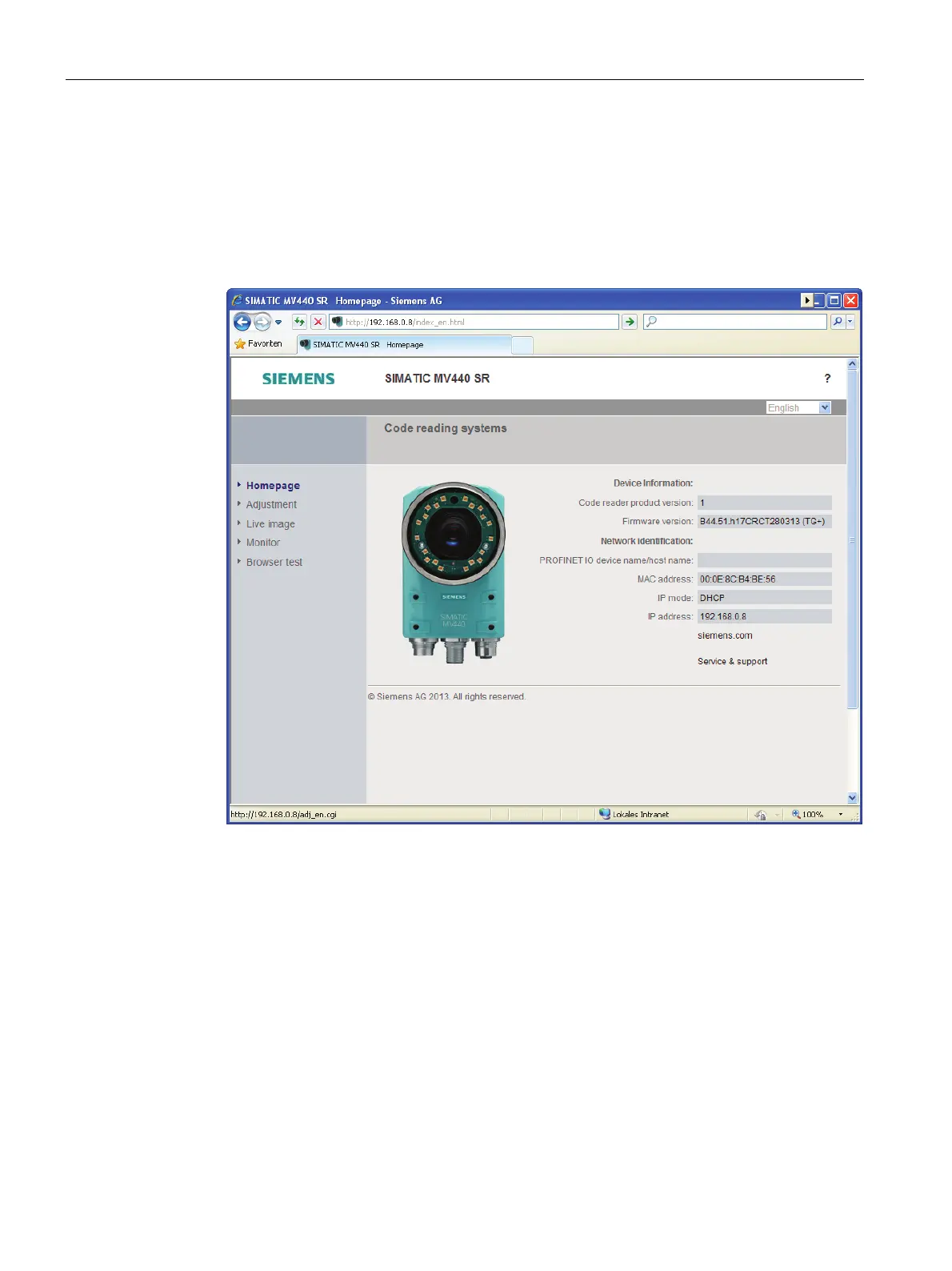 1. Open Internet Explorer and enter the IP address of the reader in the address bar.