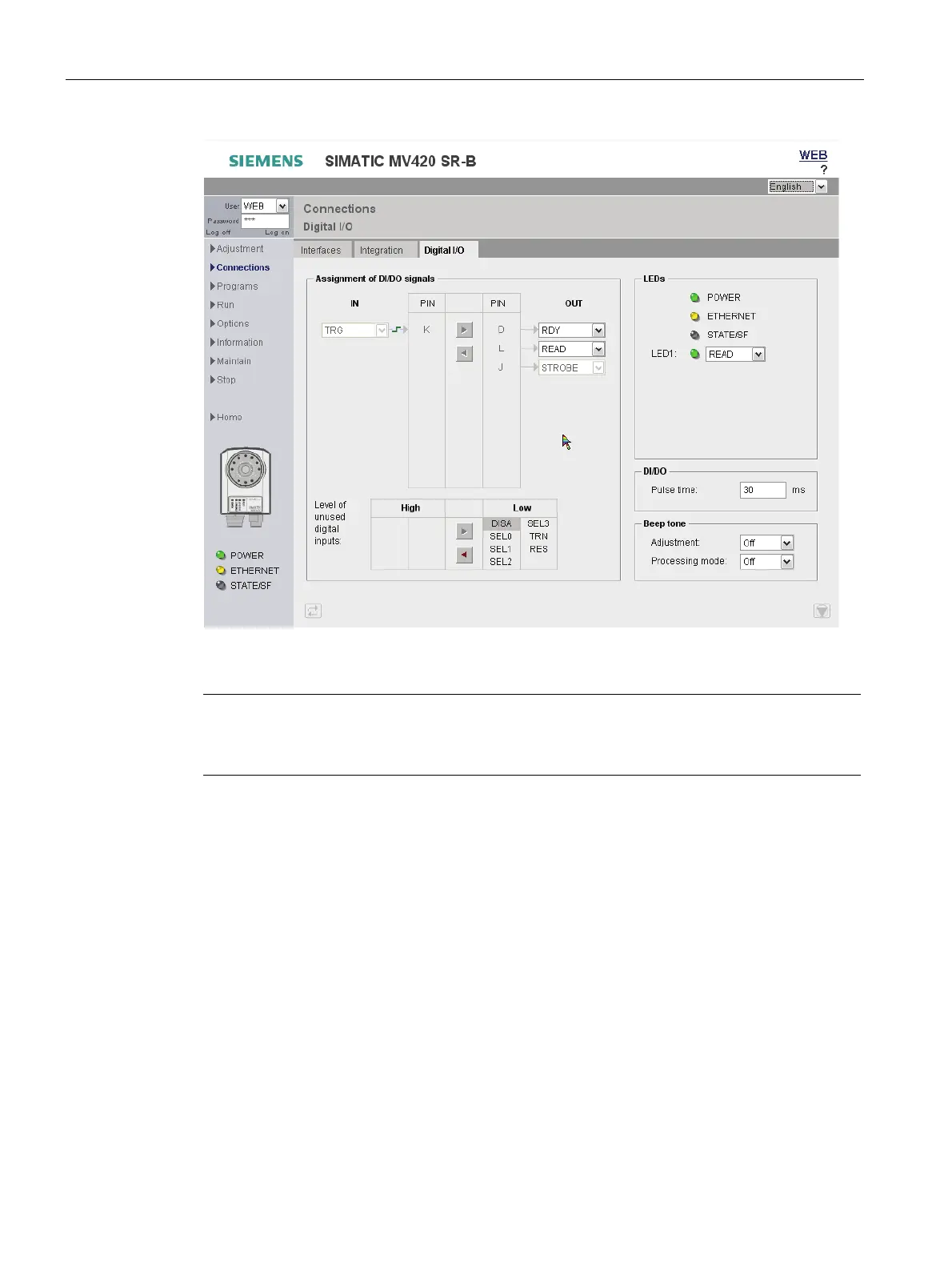 Figure 9-11 Connections - "Digital" I/O tab (SIMATIC MV420)