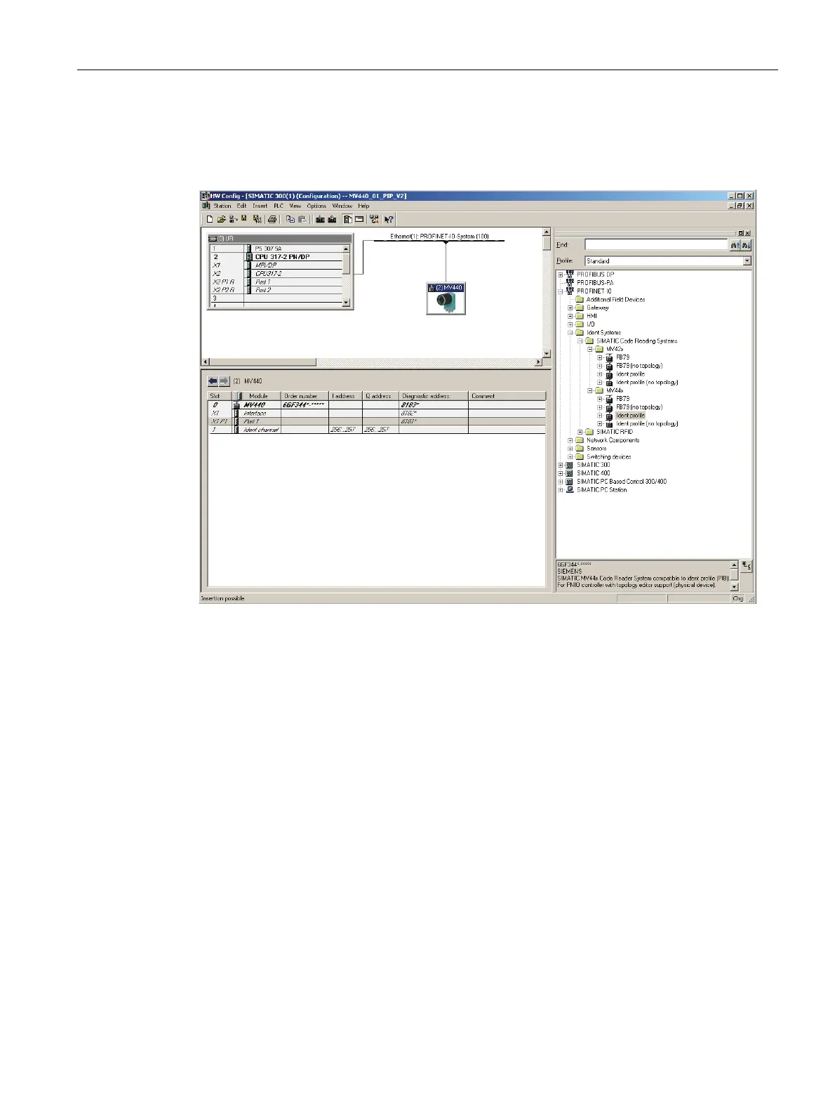 PROFINET IO \ Ident Systems \ SIMATIC Code Reading Systems \ MV44x, or MV42x; see