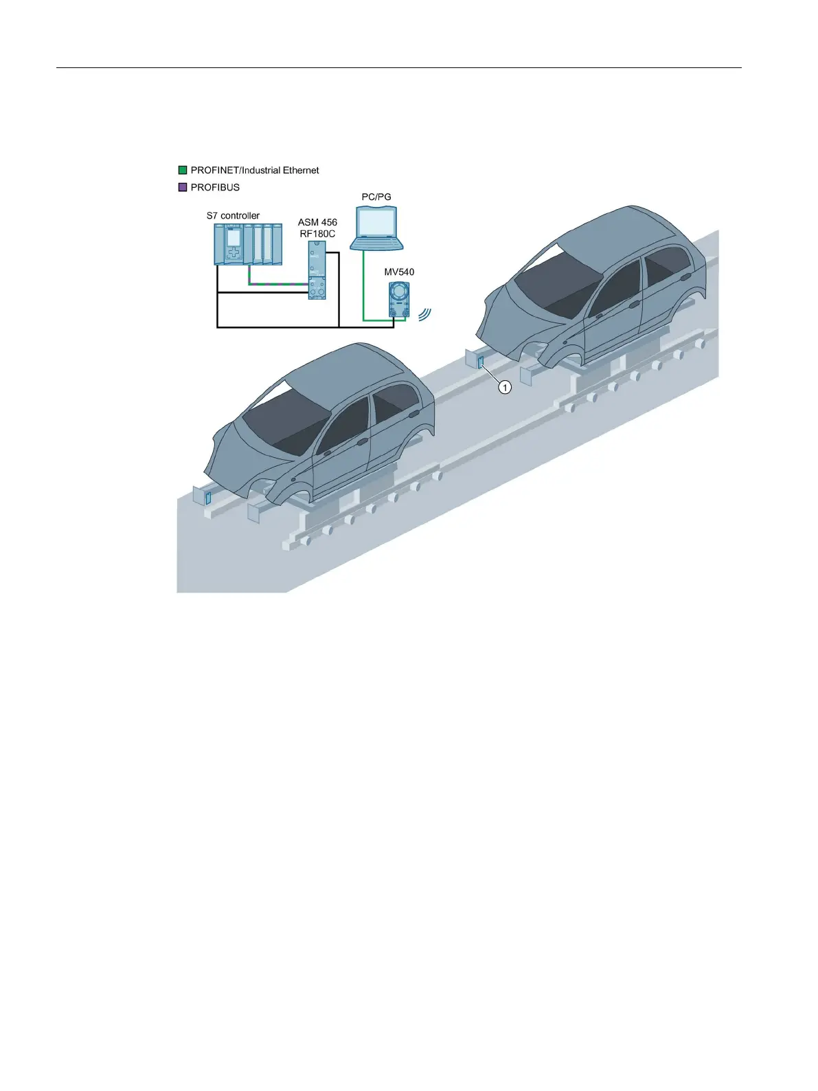 • A PC/programming device is connected via Ethernet to allow adjustment of the device.