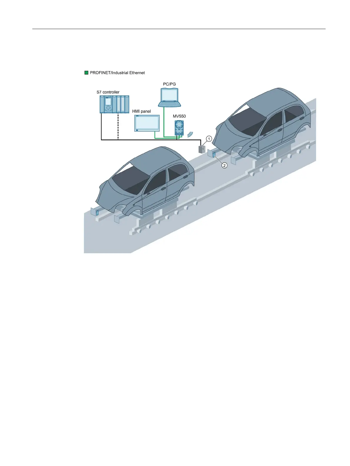 • Visualization takes place via the Web pages of the optical reader, for WinCC flexible on a