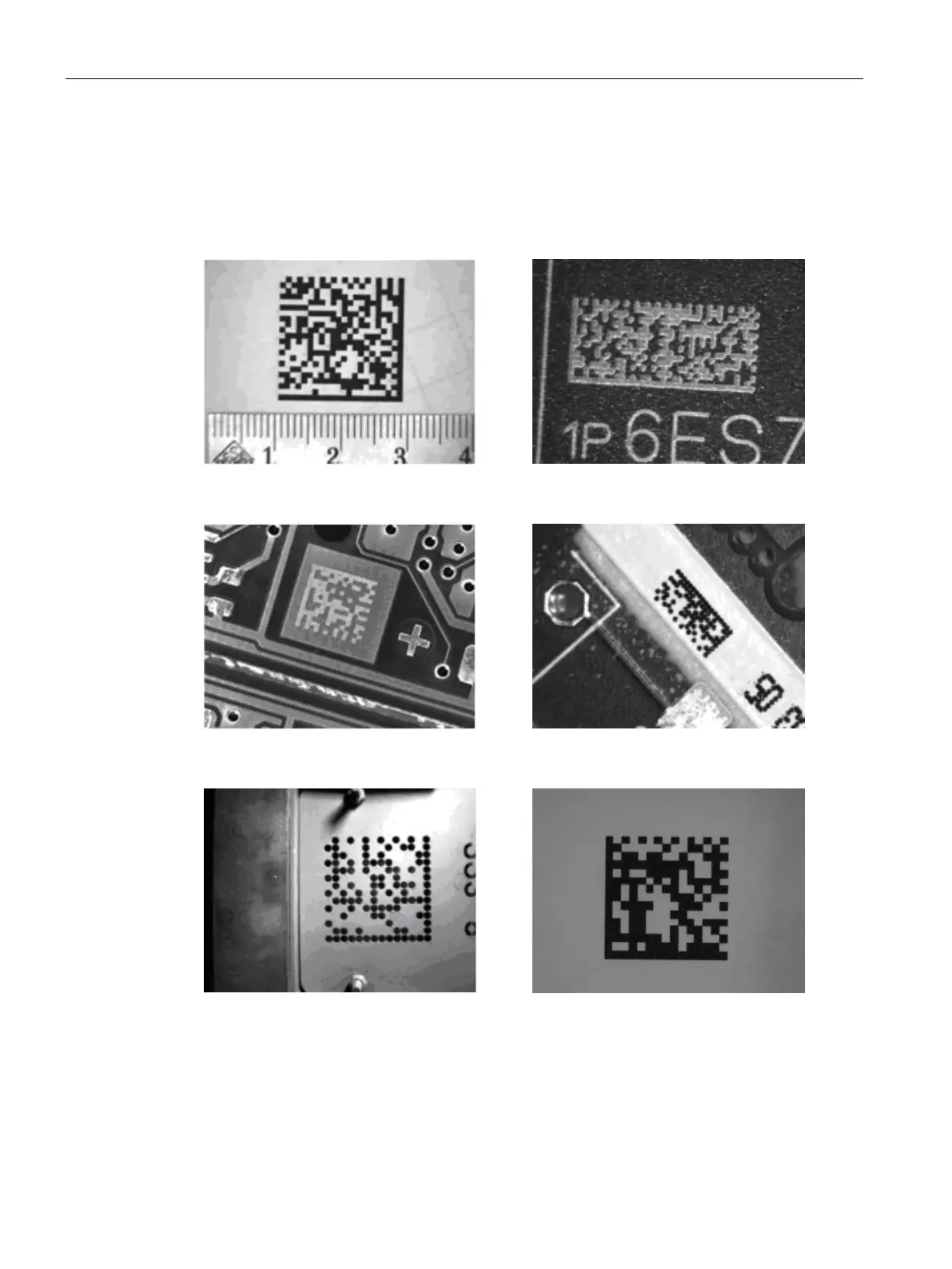 Below, you can find several examples of data matrix codes, QR codes, PDF417 codes and dot