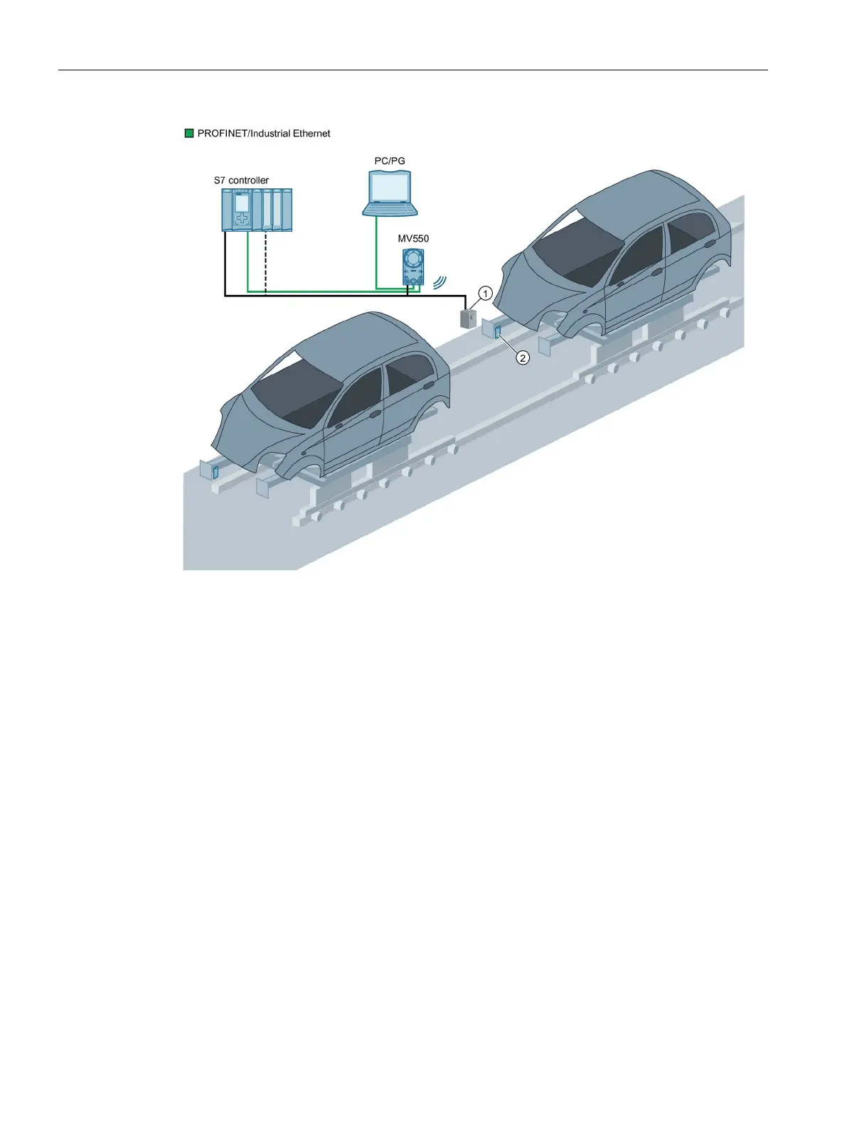 • A connection to a PROFINET IO-capable S7 controller is established via Ethernet.