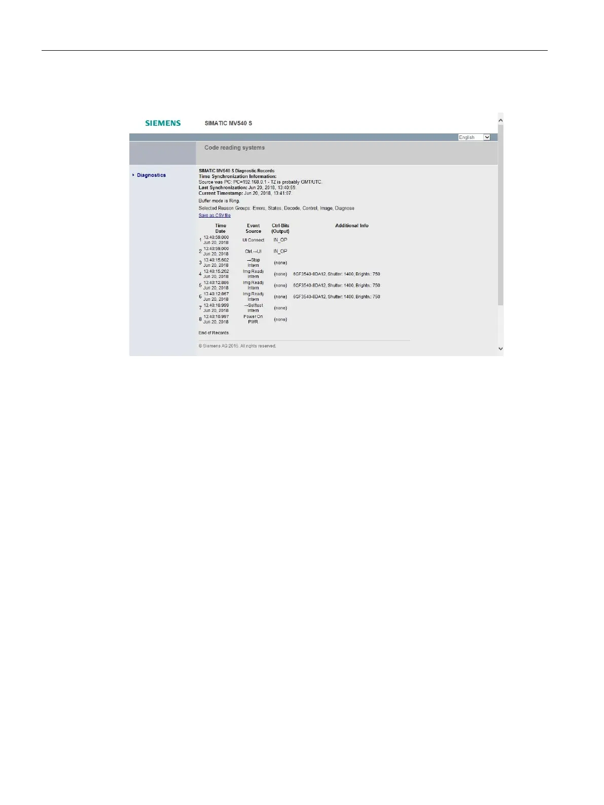 recordings buffered on the optical reader relating to errors that occurred, signal changes etc.