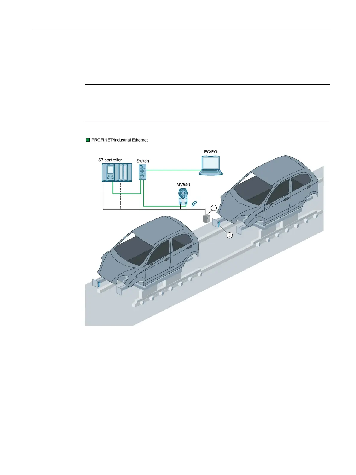 ● There is a connection to a PROFINET IO-capable S7 controller via Ethernet and a switch.