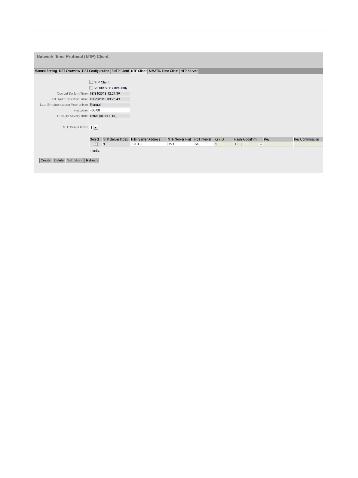 To use the secure NTP client, you configure the parameters for authentication (key ID, hash