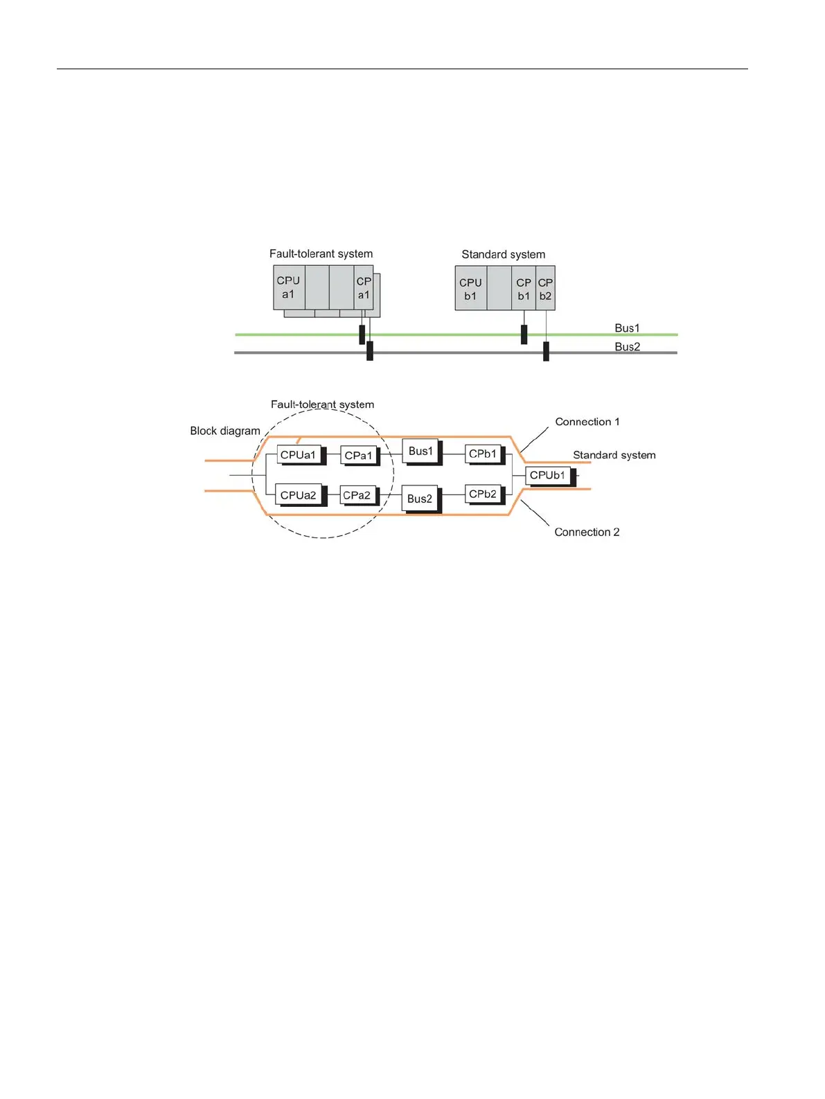 With this configuration and redundant operation, the fault-tolerant system is connected to the
