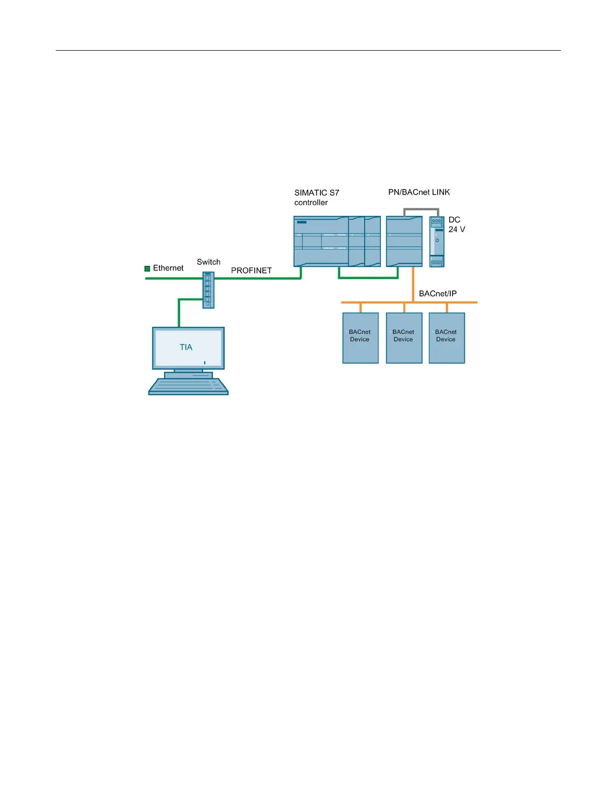 The following figure shows a basic system configuration with a PN/BACnet LINK as a
