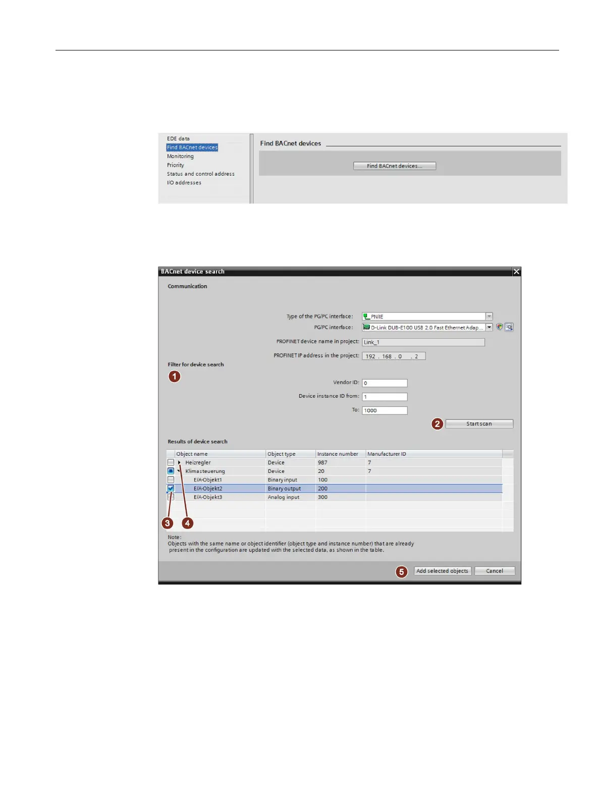 1. By clicking on the "Find BACnet devices..." button, the corresponding dialog opens.