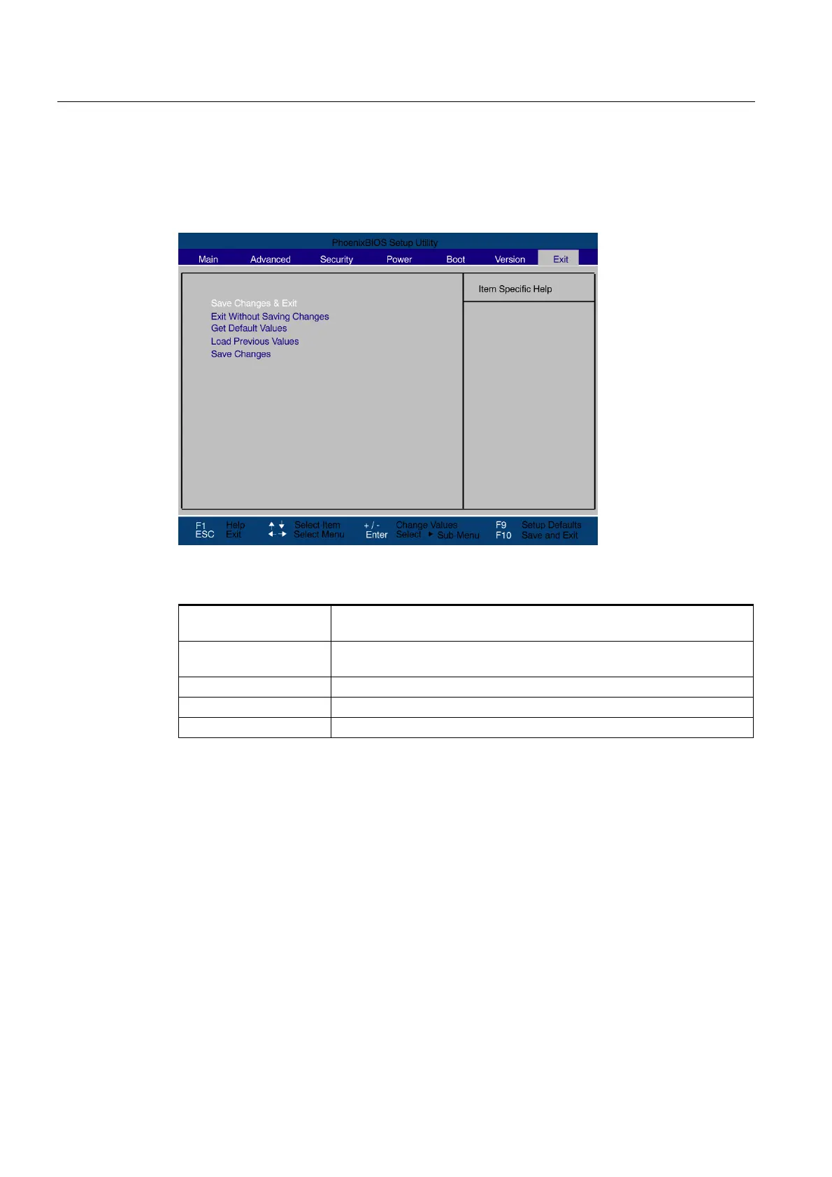 Discard Changes & Exit All changes are discarded and the system performs a restart based on