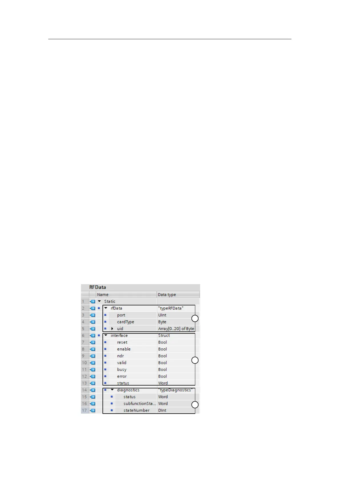 the read UID. This parameter needs the PLC data type "typeRFData" as data