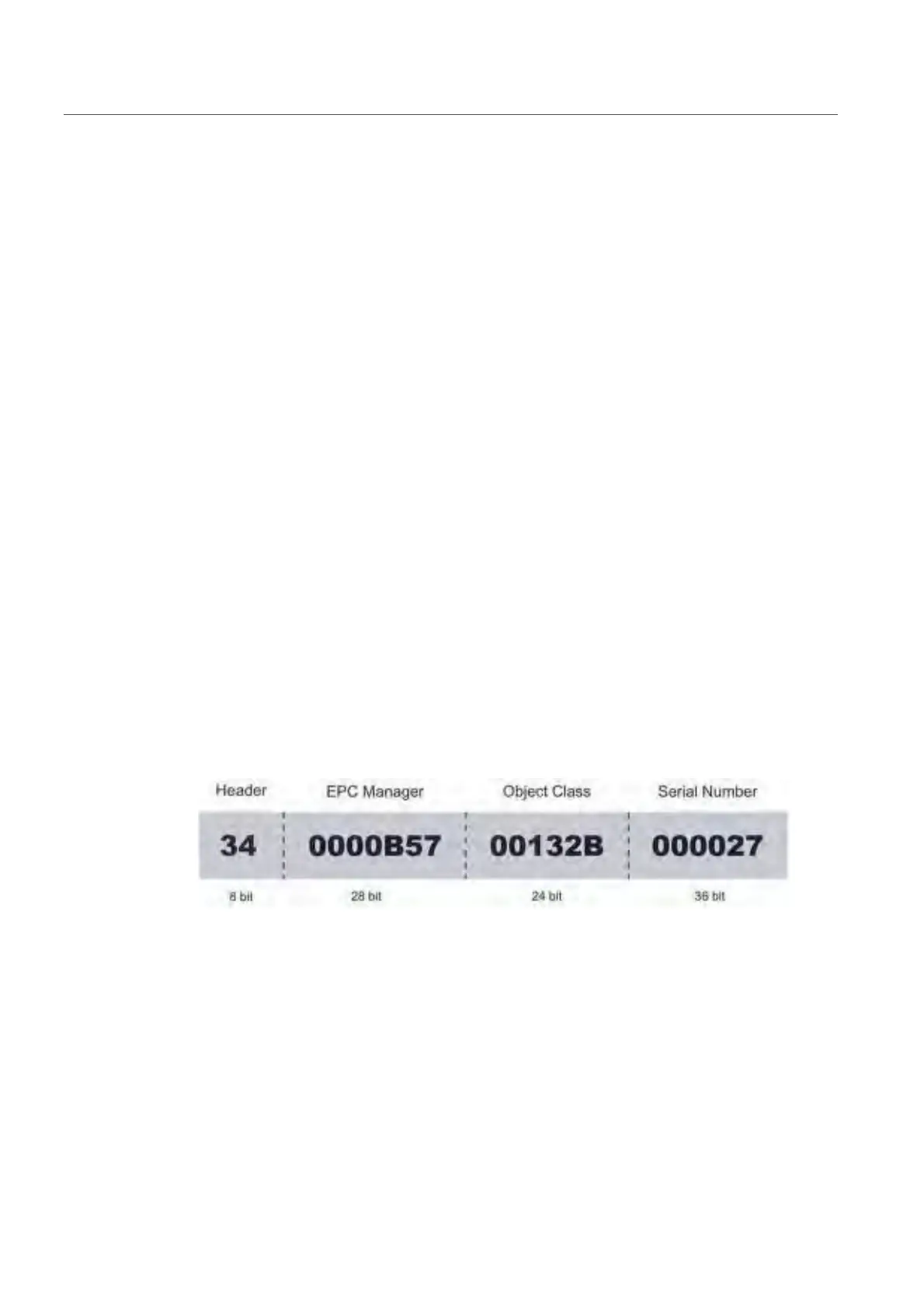 There are different EPC number schemes with different data lengths. Below is the structure