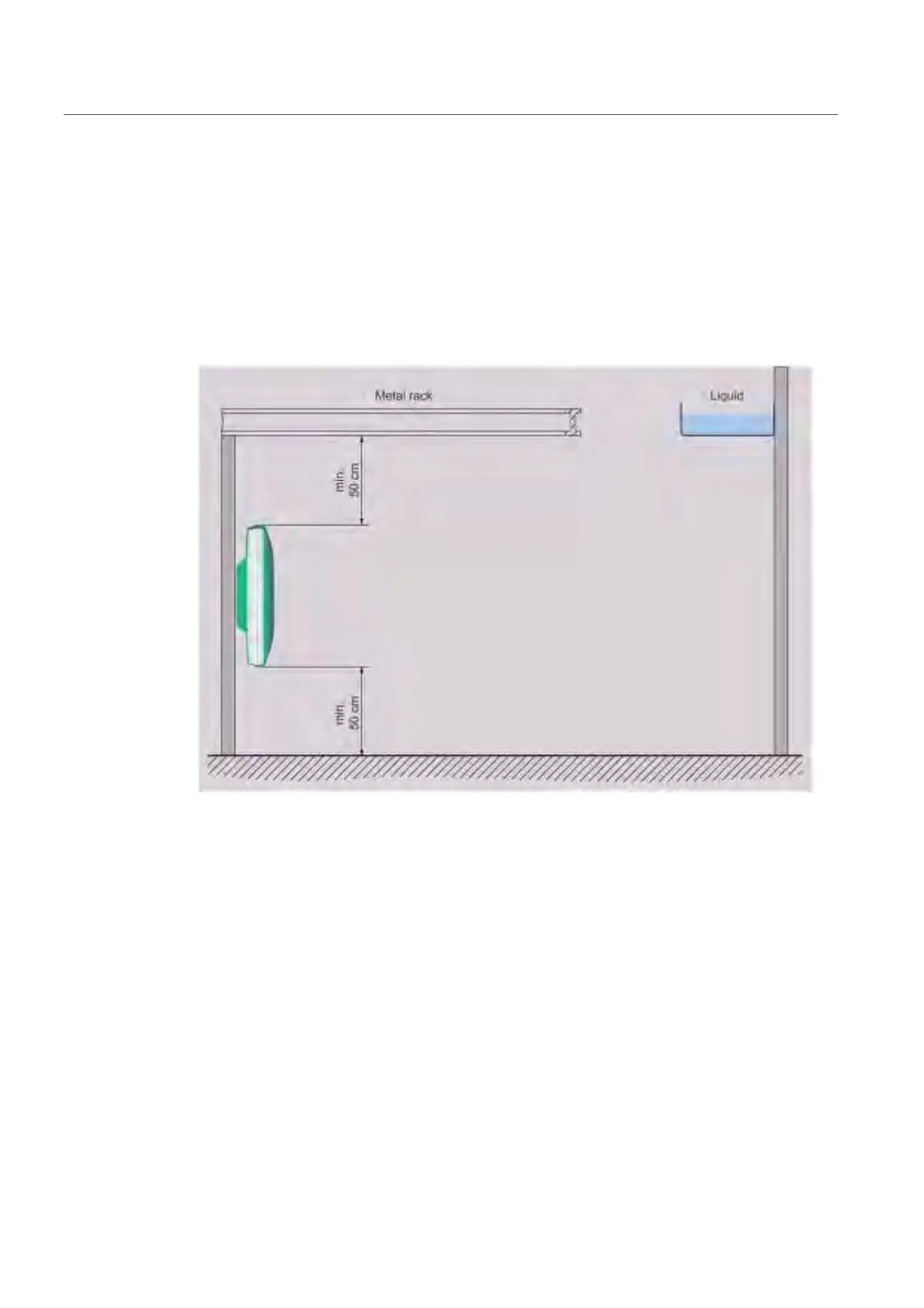 Between the antenna and liquids or metals, a minimum distance of 50 cm should be kept to.