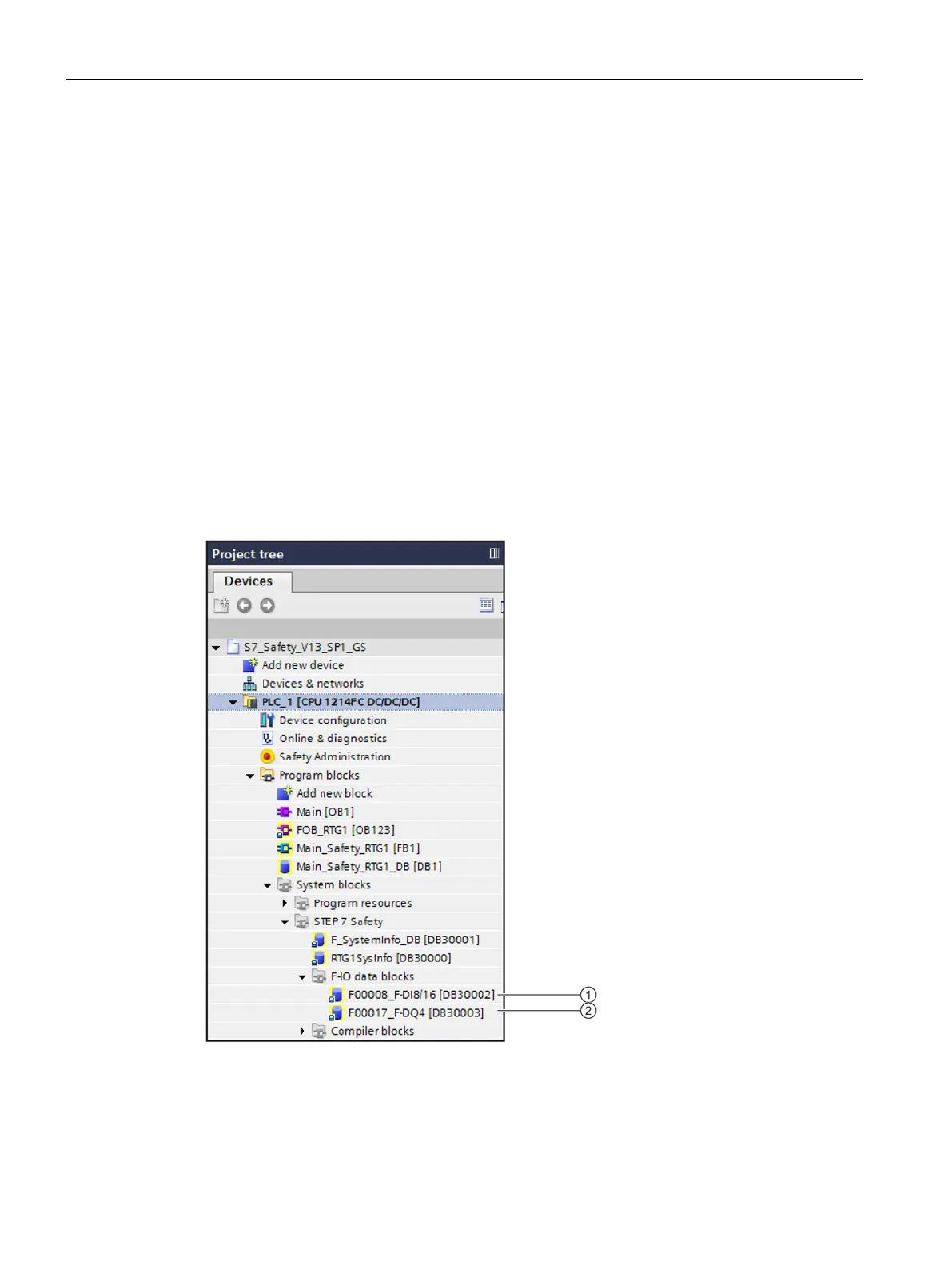 The F-I/O DBs generated for the example I/O are located in the "Project tree" in the