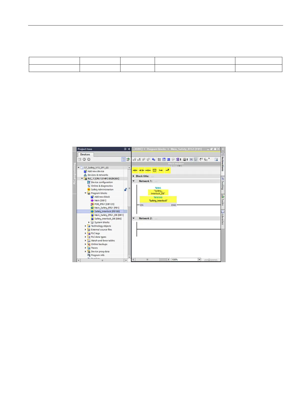 2. Use drag-and-drop to insert the F-FB "Safety_Interlock" in Network 1 of the main safety